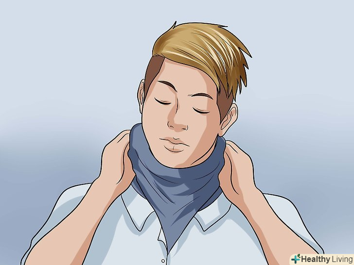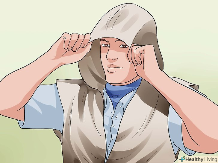 Пов'яжіть на шию бандану або хустку.складіть бандану або хустку по діагоналі і вільно пов'яжіть навколо шиї. Складки тканини повинні розташовуватися в області горла, а вузол — ззаду.- Типовою кольоровою гамою Ордена ассасинів вважаються білий і червоний кольори, але це не обов'язкове правило.[2] можна спокійно використовувати таку колірну гамму, яка вам більше подобається.