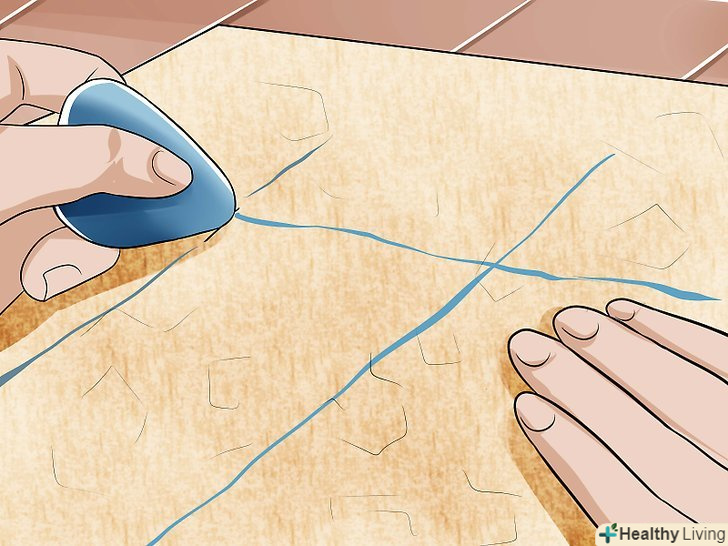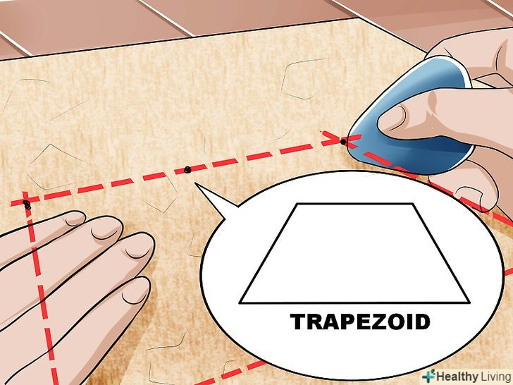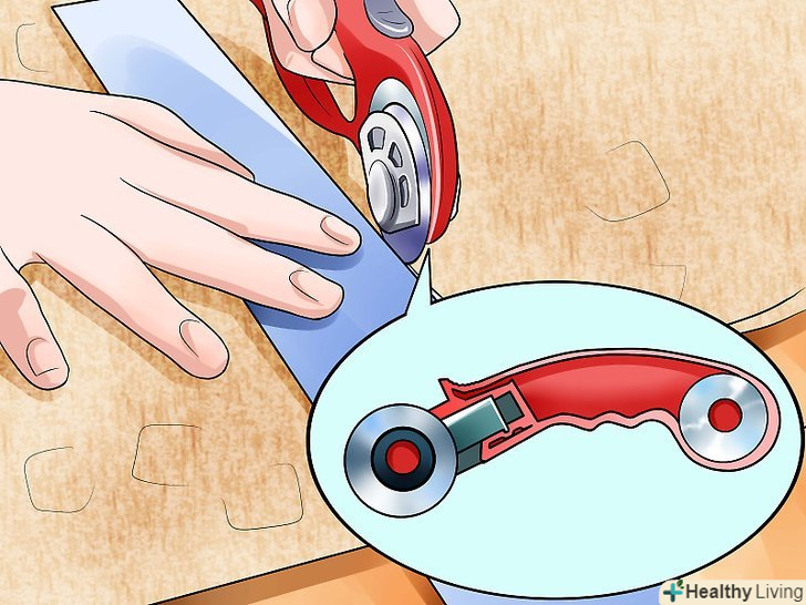 Викроїте накреслену деталь.[13] за допомогою лінійки і роликового ножа або бритви виріжте накреслену вами трапецію. Можна також скористатися спеціальними ножицями для різання шкіри (вони не обов'язкові при роботі з штучними матеріалами).