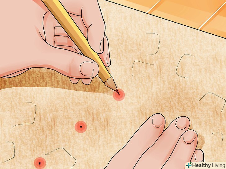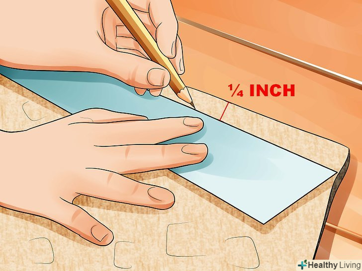 Позначте мітками кінці паралельних відрізків, щоб потім намітити поздовжні краї наручей.для цього поставте на кінцях паралельних відрізків невеликі мітки у вигляді рисок довжиною близько 1 см.у кожного відрізка є два кінці, тому всього у вас повинно вийти чотири мітки.