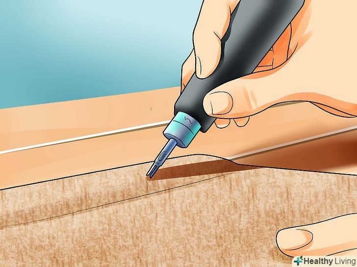 Скористайтеся дироколом для шкіри, щоб створити отвори для шнурівки уздовж намічених ліній.почніть роботу від зап'ястного краю наручей, відступивши від нього приблизно на 1 см, і поступово просувайтеся до ліктьового краю. Залишайте між отворами відстань близько 2,5 см.- Кількість отворів шнурівки і конкретну відстань між ними можна визначити на власний розсуд. придбати дирокол для шкіри можна через Інтернет-магазини, коштує він відносно недорого. Замість дироколу можна використовувати дриль.