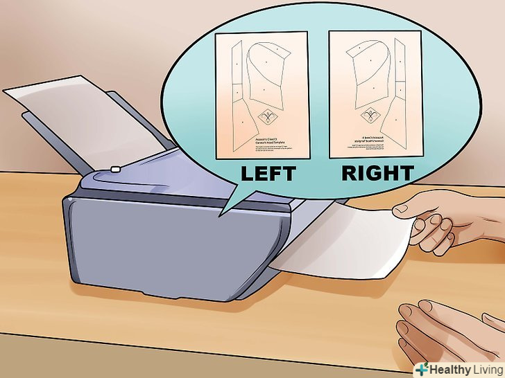 Роздрукуйте відразу дві копії викрійки.одну ви будете використовувати, щоб викроїти праву сторону капюшона, а другу — для лівого боку.[6]
