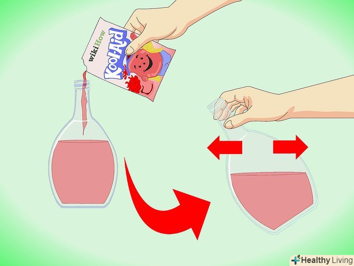 - Додайте Kool-Aid над раковиною або ванною. Іноді "вино" може спінитися і розлитися, як це зазвичай трапляється зMentos і дієтичної колою, Самого напою не стане менше, так як витече тільки піна. Однак розлитий Kool-Aid досить важко відмити, тому робіть це над раковиною!