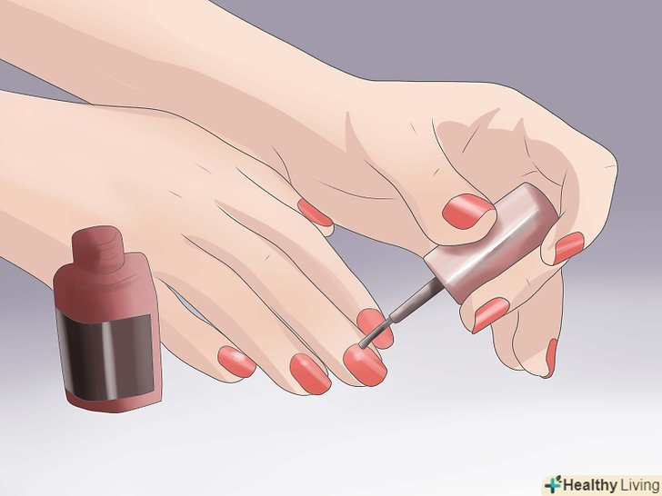 Пофарбуйте нігті в червоний колір.в обох фільмах Уенсдей ходить з червоними нігтями. Якщо ви не вмієте робити манікюр, попросіть подругу або маму допомогти вам. Якщо ж ви не любите нафарбовані нігті, пропустіть цей крок.