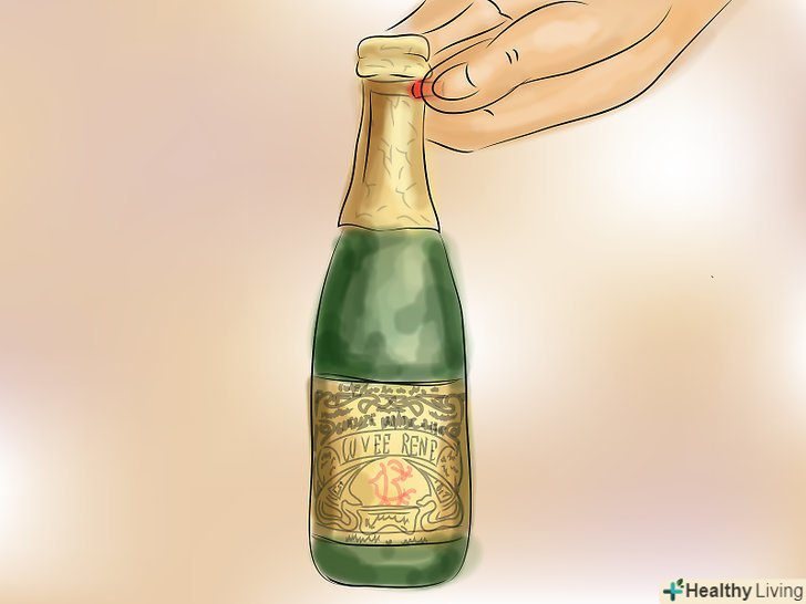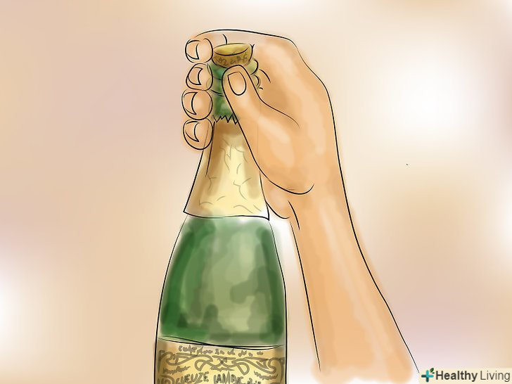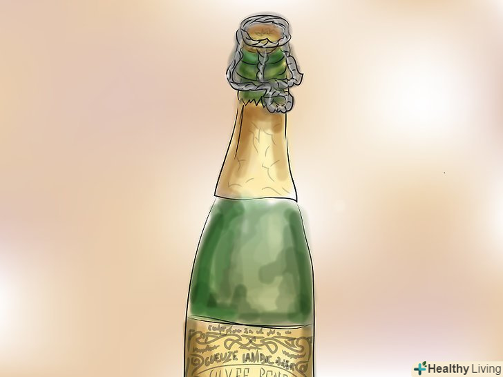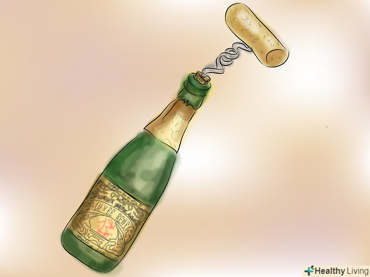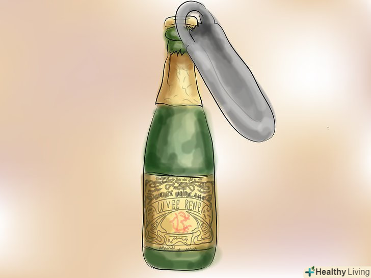 Відкоркуйте пляшку.пляшка може бути закупорена пробкою, подібно до винних пляшок або пляшок з під шампанського. Якщо під кришкою є пробка, використовуйте штопор, щоб видалити її.- Пробки, подібні пробкам в пляшках шампанського, повинні залишатися обв'язаними дротиком, до відкриття пляшки. В іншому випадку, пробка може вистрілити.