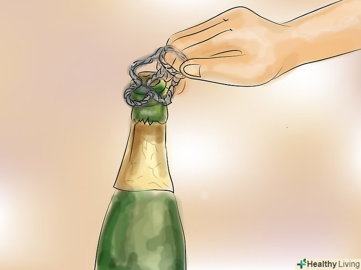 - При відкритті пробки, не знімайте відразу зволікання. Використовуйте її для того, щоб утримати пробку, оскільки вона може вилетіти з шаленою силою.