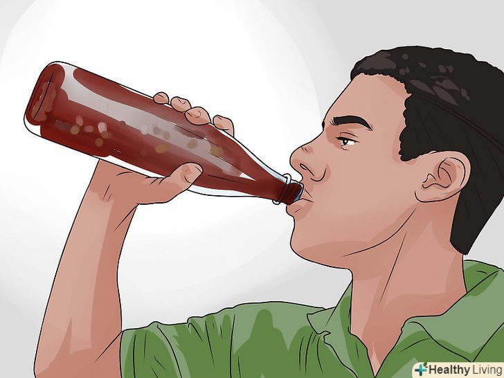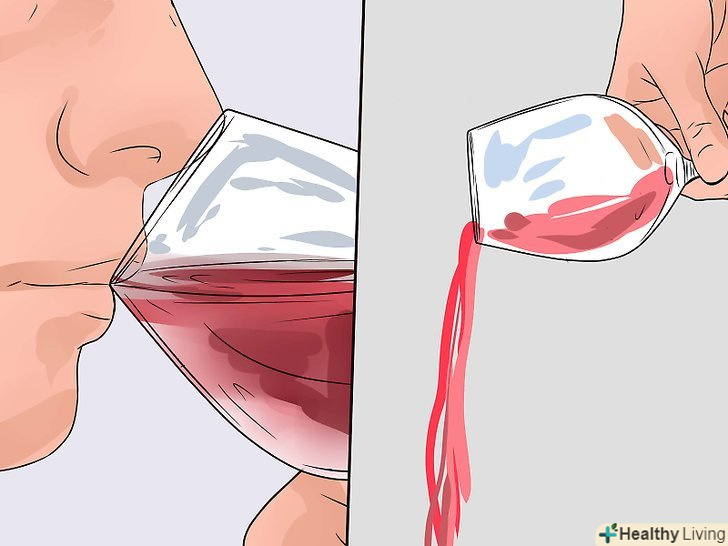 - Прикиньтеся, що зробили ковток горілки, але не ковтайте. Зробіть гримасу, немов вона обпалює вас, і зробіть ковток зі склянки. Буде виглядати, немов ви "запиваєте" горілку водою-звичайна практика профілактики похмілля.