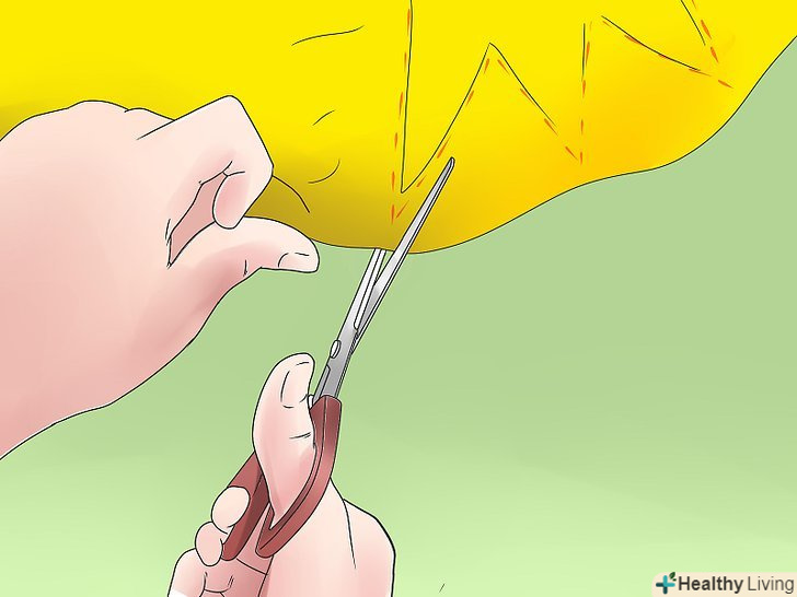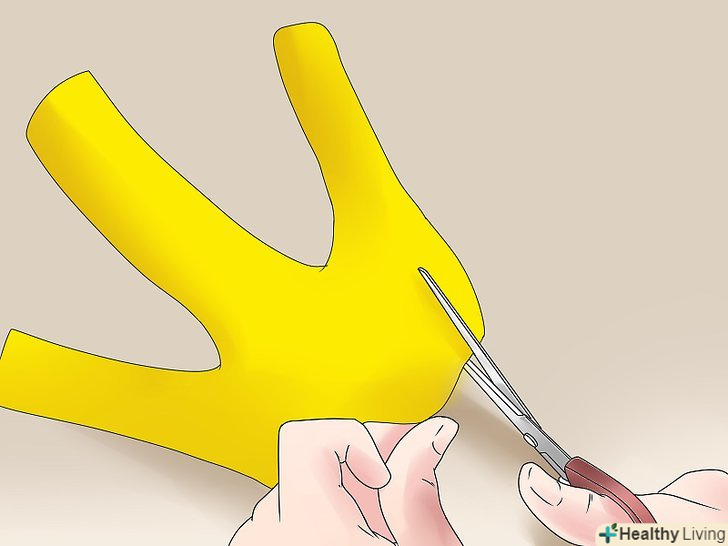 - Кожен розріз повинен бути довжиною приблизно в половину найширшої частини вашої стопи. Необхідно, щоб Качині лапи могли бути надіті вам на ноги, але при цьому прорізи не повинні бути занадто великими, щоб лапи не зісковзували або не розвалилися на частини.