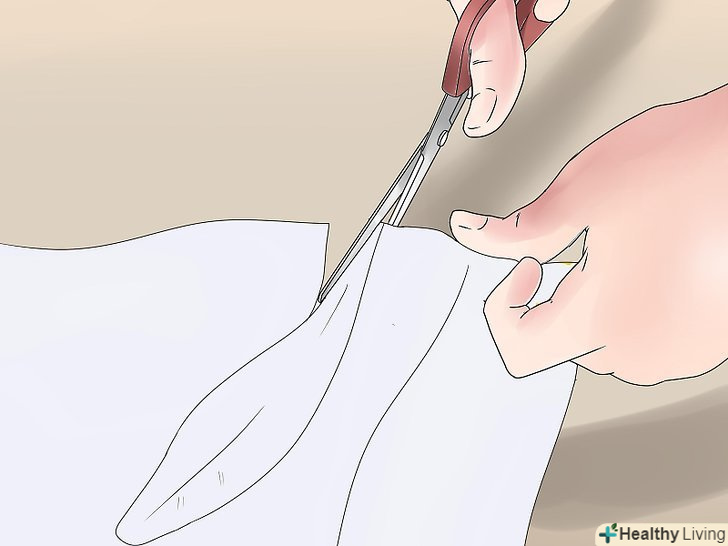 Виріжте з білого фетру і прикріпіть до тіла пір'я хвоста.намалюйте три вузьких овалу на білому фетрі (приблизно по 30,5 см в довжину і по 7,5 см в ширину).- Приліпити скотчем або приклейте верхні 7,5 см кожного пера по центру низу толстовки з виворітного боку. Все пір'я повинні зустрічатися в одній точці, розходитися з неї віялом в різних напрямках і стирчати знизу з-під толстовки.