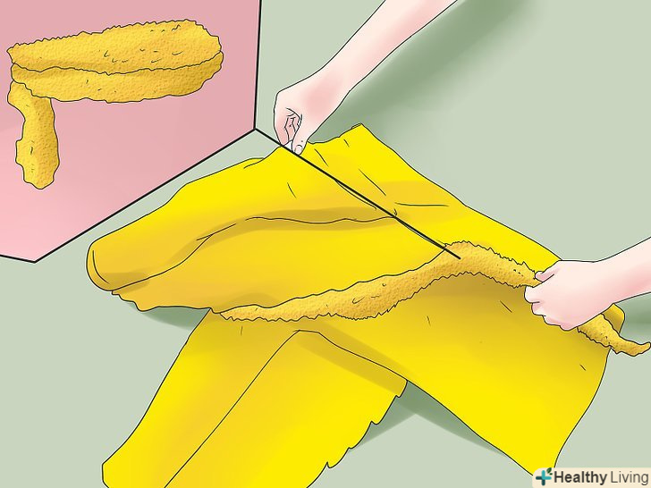 Прикріпіть частину жовтого боа до рукавів жовтої толстовки. [2] прикладіть пір'яне боа до толстовки, яку будете використовувати для костюма. Прокладіть боа по руці від плеча до кінчика рукава і обріжте. Прикладіть залишок боа до іншої руки і повторіть.- Клейовим пістолетом або голкою з ниткою прикріпіть боа до рукавів толстовки. Пір'я повинні проходити по верхній стороні рукавів, а не знизу або збоку.