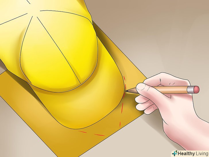 Обведіть контури козирка на помаранчевому фетрі.покладіть козирок бейсболки на шматок помаранчевого фетру. Обведіть козирок на фетрі, відступаючи від його країв на 2,5 см. [1]- Ще раз повторіть даний крок, щоб у вас вийшло 2 деталі з помаранчевого фетру за формою козирка.