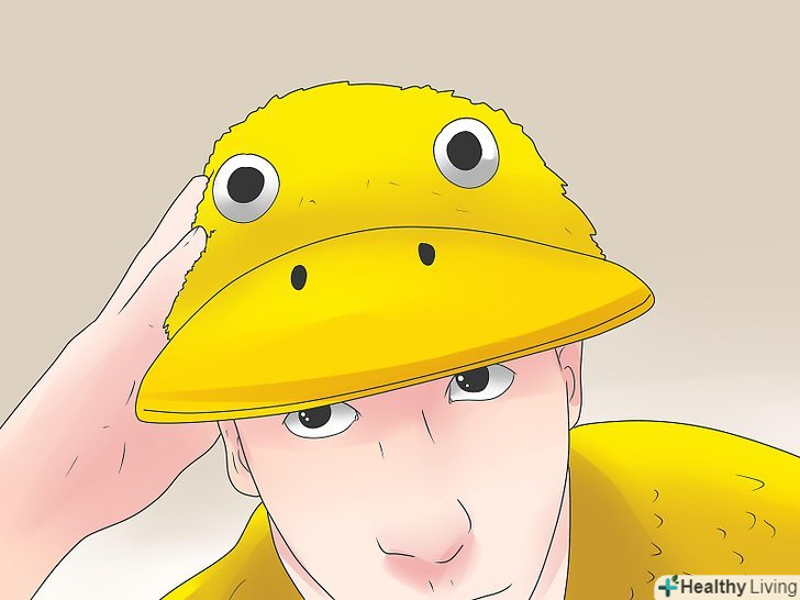 Одягніть качину бейсболку.одягніть качину бейсболку на голову. При необхідності поправте її, щоб вам було зручно.