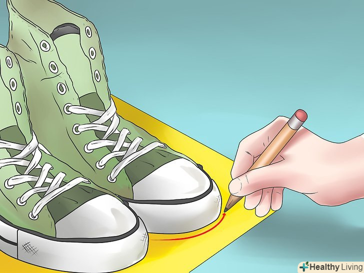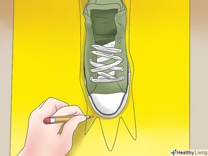 Обведіть свої черевики на шматку фетру.підберіть черевики, які будете одягати зі своїм костюмом. Поставте кожен черевик на шматок оранжевого фетру і обведіть олівцем, відступаючи від країв черевика на 2,5 см.- Вам необхідно обвести кожен черевик, щоб виготовити обидві лапи.