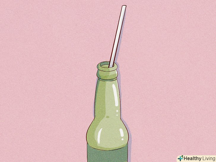 Вставте в пляшку гнучку соломинку і зігніть її.через соломинку в пляшку буде надходити повітря, що дозволить пиву швидше виливатися з неї. Чим швидше буде виливатися пиво, тим легше вам буде випити його залпом. При цьому верхній кінчик соломинки повинен виступати з горлечка пляшки.[13]- Не впустіть соломинку в пляшку, інакше вам складно буде дістати її, не проливши пиво.