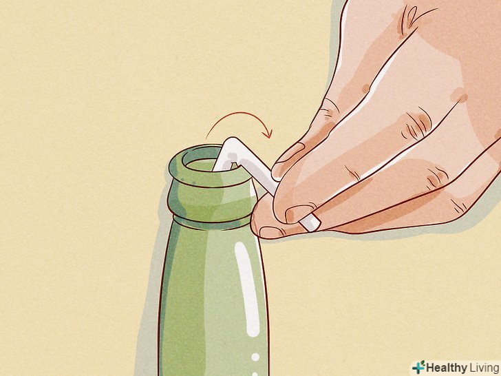 Утримуйте соломинку так, щоб її верхній кінець був спрямований від вашого обличчя.покладіть на соломинку палець і направте її вигнутий кінчик в сторону від себе. В цьому випадку вона не завадить вам випити пиво залпом. Притисніть вигин соломинки до шийки пляшки.[14]