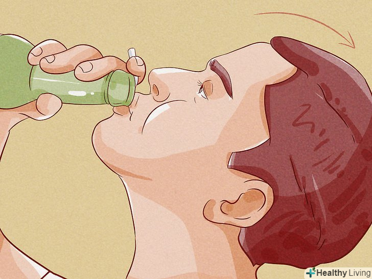 Розслабте горло і дозвольте пиву вільно текти, поки не спорожніє банку.не намагайтеся ковтати пиво в спробах спорожнити банку. Замість цього розслабте горло і дозвольте пиву вільно текти по стравоходу прямо в шлунок. Затримайте при цьому дихання.[11]- Подумайте про те, щоб сплющити банку в руці і жбурнути її на підлогу після того, як ви вип'єте все пиво, щоб справити на своїх друзів ще більше враження. Однак не залишайте за собою сміття і підберіть банку трохи пізніше.