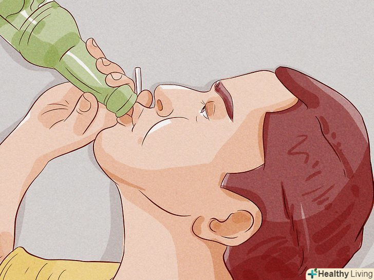 Відхиліть голову назад і перекиньте пляшку.після того як ви вдихнете повітря, відхиліться назад і різко перекиньте пляшку. Після цього з пляшки потече пиво. Притримуйте соломинку пальцем, щоб в пляшку надходило повітря.[16]Попередження: будьте обережні і не вдарте пляшкою по зубах, коли будете перекидати її!