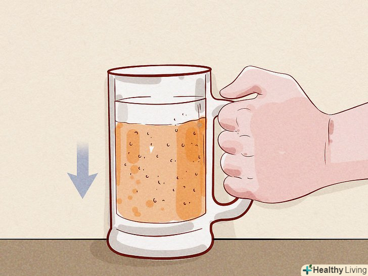 Вдарте дном келиха по столу, щоб випустити газ.у пиві міститься вуглекислий газ (CO2). Якщо крім рідини Ви проковтнете ще й газ, це викличе дискомфорт і, можливо, нудоту. Простий спосіб позбутися частини CO2 перед тим, як пити пиво, полягає в тому, щоб стукнути дном келиха об стіл або іншу тверду поверхню.[2]- Не бийте келихом по столу занадто сильно, просто постукайте, щоб випустити бульбашки газу.