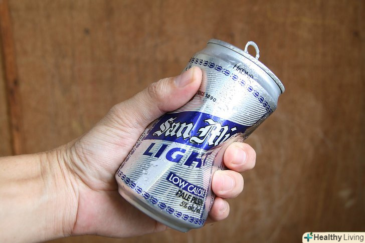 - Візьміть алюмінієву банку з пивом і помістіть великий палець двома сантиметрами вище денця. 2,5 - 4 см від дна – якраз там ви будете пробивати дірку.[2]