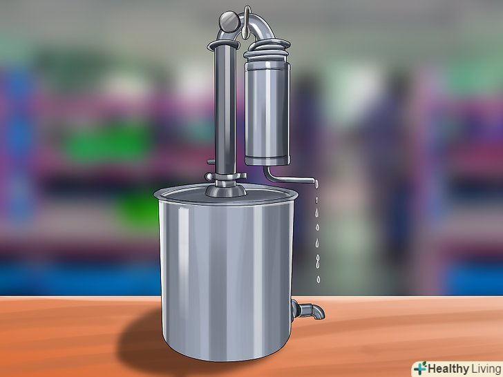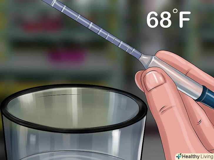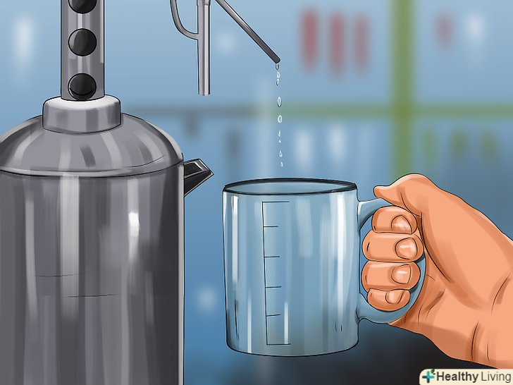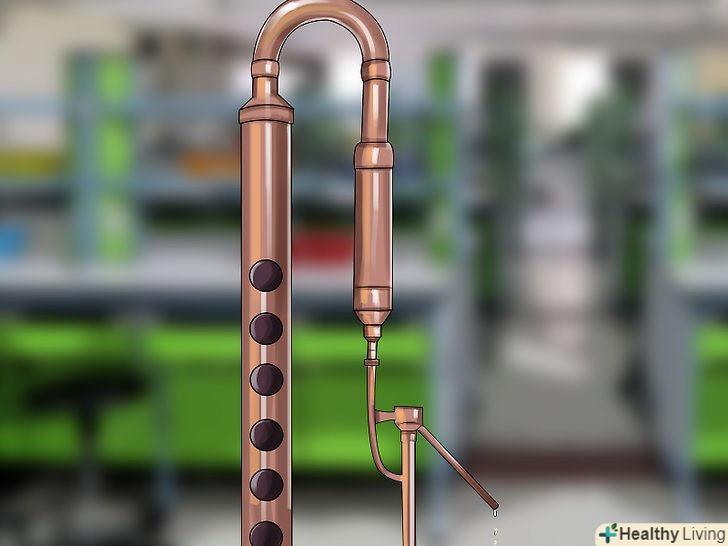 Перевірте вміст спирту і чистоту дистиляту.охолодіть пробну порцію дистиляту до 20 °C і за допомогою спиртометра виміряйте концентрацію спирту. Дистилят може містити менше 40% спирту (саме стільки міститься в стандартній горілці) або бути міцніше, ніж належить (наприклад, містити більше 50% спирту).[22]- Горілку зазвичай розбавляють, перш ніж розлити в пляшки, тому в дистиляті може бути дуже високий вміст спирту. Крім того, дистилят може також мати сильний запах, і буде потрібно додаткова перегонка або вугільна фільтрація.