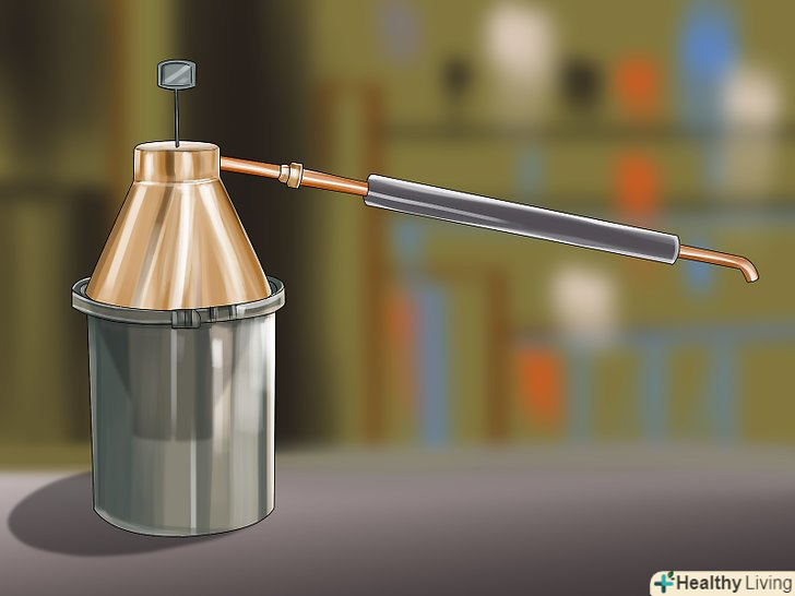 Розігрійте брагу в перегінному апараті, щоб почати процес дистиляції.це можна зробити за допомогою газового пальника, дров або електричної печі, в залежності від типу використовуваного апарату. На рівні моря бажано нагріти брагу до температури близько 78 °C, при цьому температура не повинна перевищувати 100 °C (точка кипіння води).[18]- Коли брага розігріється, спирт та інші речовини почнуть випаровуватися і конденсуватися в охолоджуваної частини апарату.