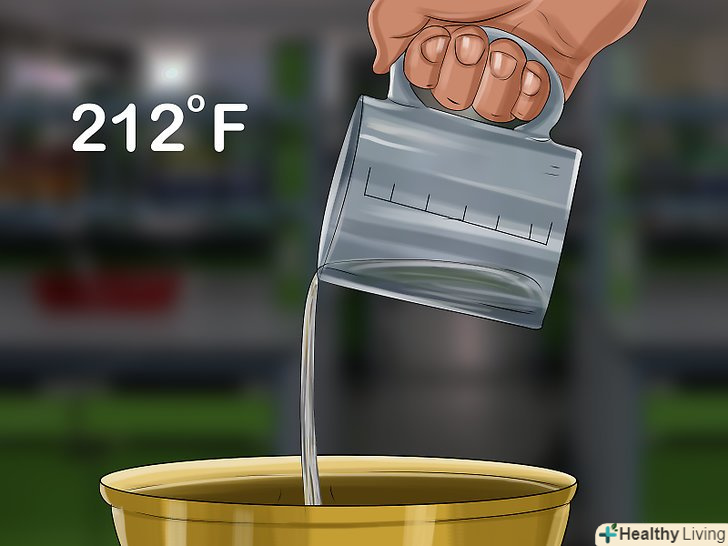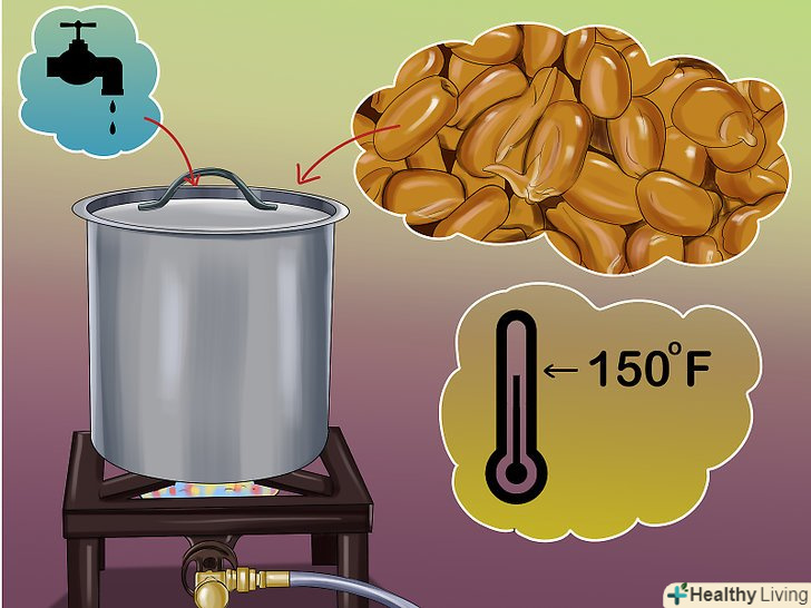 При необхідності додайте додаткові ферменти.наприклад, якщо ви використовуєте в якості вихідної сировини картоплю, можна придбати в магазині товарів для кондитерів харчовий порошок ферменту амілази і додати його в сусло, щоб перетворити крохмаль в зброджуваний цукор. Використовуйте рекомендовану кількість ферменту, щоб розщепити наявний крохмаль. Якщо ви додаєте ферментний порошок, немає необхідності використовувати багаті ферментами соложені зерна ячменю або пшениці.[5]- Крохмаль необхідно перетворити в желе (желатинувати), щоб ферменти могли потім розщепити його. Злакові пластівці часто вже желатиновані. Щоб перетворити в желеподібне сусло інші інгредієнти, наприклад картопля, необроблені або соложені зерна, їх нагрівають у воді до температури желатинізації конкретного крохмалю.