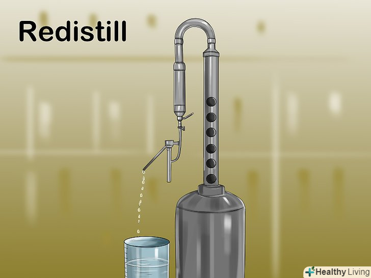 При необхідності або бажанні переженете рідину ще раз.Таким чином ви підвищите концентрацію спирту і краще очистіть дистилят. Для отримання горілки високої чистоти часто переганяють дистилят 3 і більше разів.[23]- Врахуйте, що при кожній перегонці слід позбавлятися від первача і хвостів!
