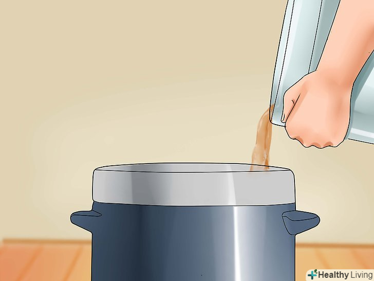 Займіться фільтруванням.власне, суть його полягає в змиванні гарячої рідини з зерна. Найкраще робити це в два етапи: коли гаряча рідина зцідиться, додайте половину промивної води, доведеної до 80-90 за Цельсієм, і почекайте хвилин 20. Потім знову зцідіть. І знову додайте води. За підсумком у вас повинно вийти літрів так 25 гарячої рідини. Найефективніше т.зв. безперервне фільтрування, коли ви контролюєте швидкість зціджування гарячої рідини, з тією ж самою швидкістю доливаючи зверху воду для фільтрування, нагріту до 75 за Цельсієм. Перші два літри гарячої рідини варто влити назад в котел, щоб відфільтрувати їх краще і позбутися від зайвих присмаків. Продовжуйте фільтрувати до тих пір, поки не наберете достатньо рідини для переходу до наступного етапу (літрів 20 або близько того).