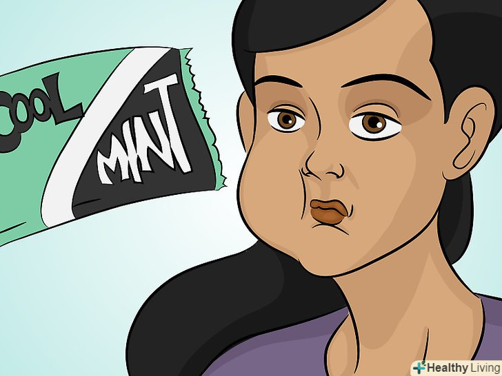 Освіжіть подих.як правило, алкоголь викликає неприємний запах з рота. Якщо ви не хочете попастися, використовуйте ополіскувач для рота, пластинки для свіжого дихання і м'ятну жувальну гумку. Намагайтеся завжди жувати що-небудь з сильним ароматом, наприклад, їжте страви з червоною цибулею і часником, щоб приховати запах.