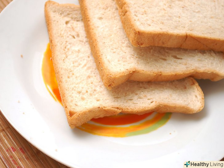 Вживайте легку їжу, щоб ще трохи перекусити перед сном. З'їжте тост з маслом, що допоможе заспокоїти шлунок вночі.- Жирну їжу часто рекомендують в лікуванні похмілля, однак, вона важко засвоюється. Так само важкі для шлунка і сирі овочі. Вуглеводи, фрукти і цукор наповнять вас енергією для одужання.