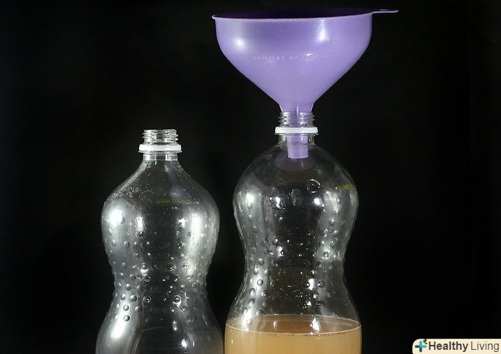 Після того, як дріжджі випадуть з розчину (ви побачите, що вони осіли на дно), влийте сидр у другу пляшку за допомогою воронки.постарайтеся залишити в першій пляшці максимально можливу кількість випали дріжджів.