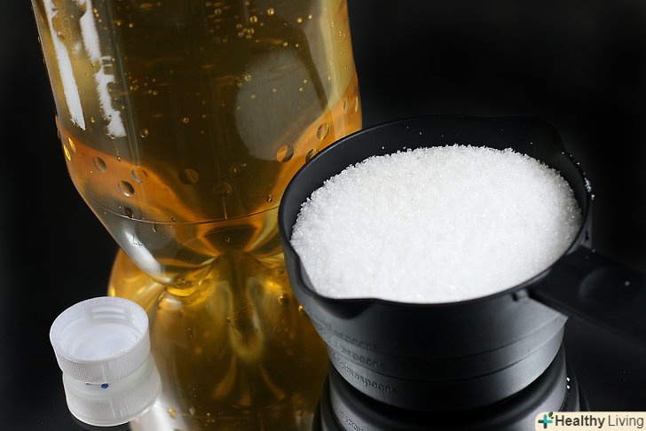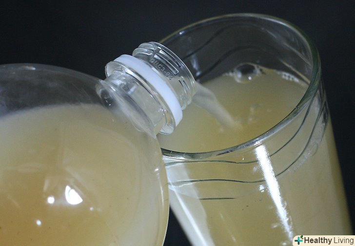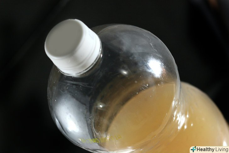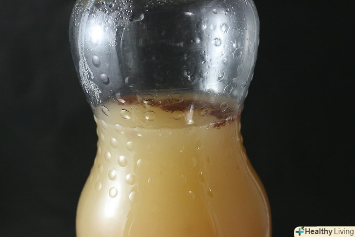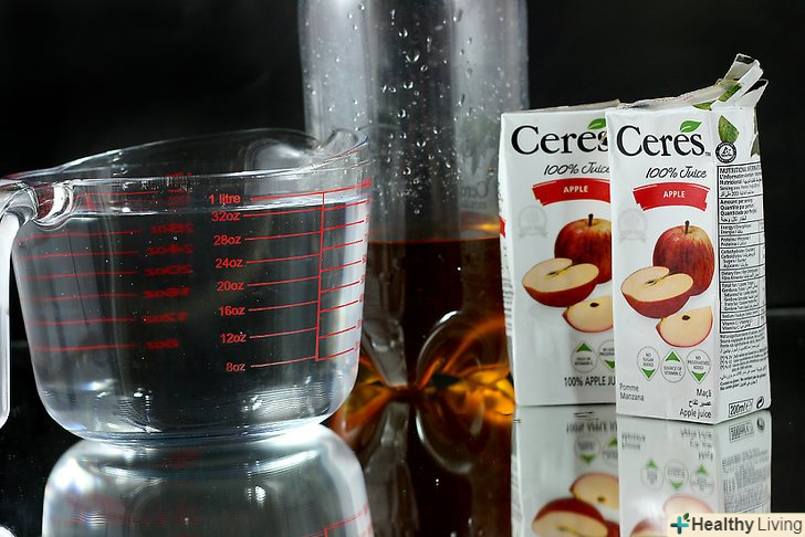 Візьміть 2-літрову пляшку від газованої води і наповніть 250 мл яблучного соку і 1 літром води.