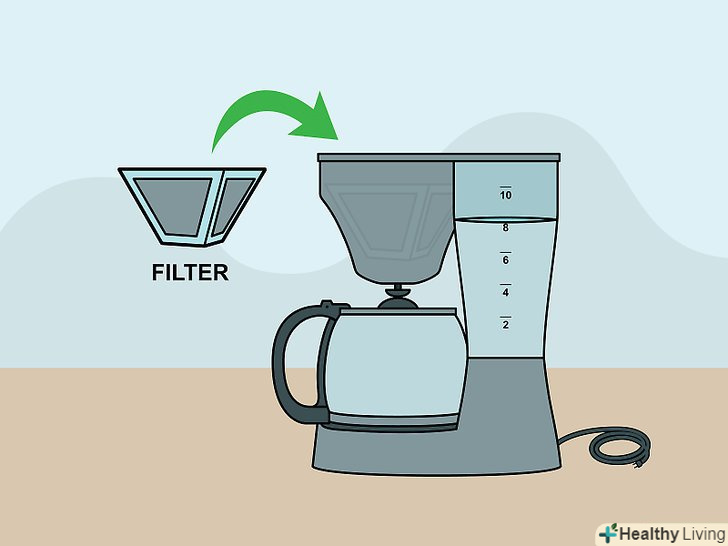 Вставте фільтр.використовуйте фільтр, який поставляється разом з вашою кавовою машиною. Деякі Кавові машини мають плоскодонний пластиковий резервуар, в який потрібно покласти паперовий фільтр, а деякі Кавові машини поставляються з багаторазовим фільтром з металевої сітки, що має форму конуса.- Якщо ви використовуєте паперовий фільтр, то переконайтеся, що він досить великий і підходить за розміром.