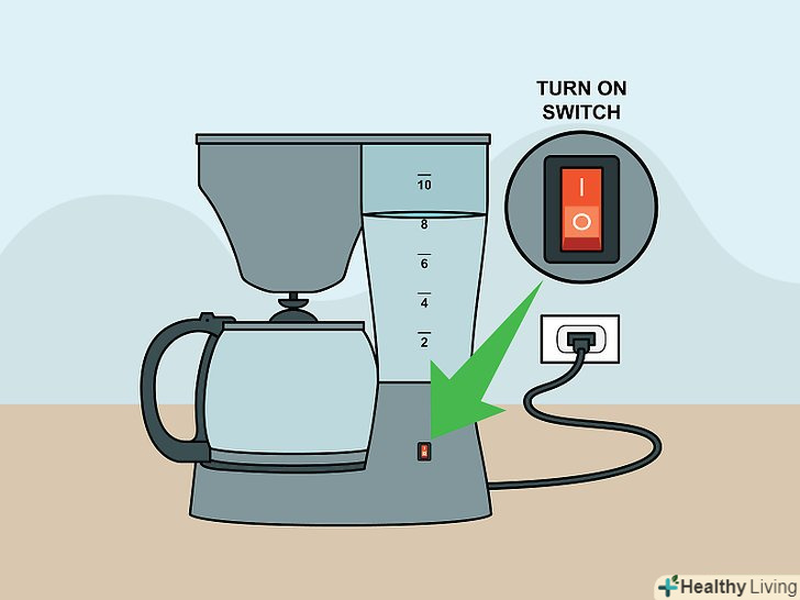 Зваріть каву.Увімкніть свою кавову машину. У більшості моделей кава-машин це означає лише натиснути одну кнопку. Деякі апарати дозволяють вибирати обсяг кави, налаштовувати міцність напою і час варіння. Щоб дізнатися можливості своєї кави-машини, уважно прочитайте інструкцію виробника.- Не залишайте глечик на конфорці надовго, якщо кава-машина включена, або після того, як ви приготували каву. Через це кава може продовжити готуватися, і смак вийде горілим.[5]