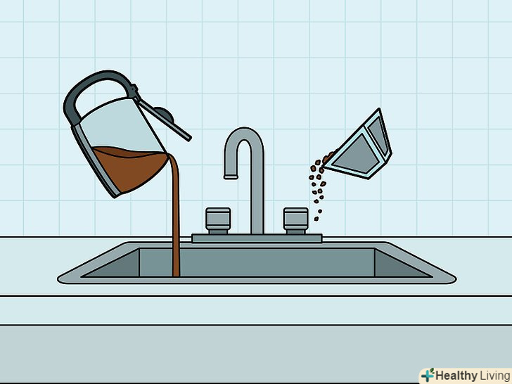 Очистіть кавову машину.не залишайте стару каву в глечику, а мелені зерна в фільтрі. Якщо їх залишити надовго, то вони запліснявіють, і кава буде мати неприємний запах. Викиньте використані кавові зерна, добре промийте кавовий глечик і не забувайте обполіскувати фільтр або тримач для фільтра.- Дотримуйтесь вказівок виробника щодо регулярного чищення кавової машини. Часто виробники рекомендують чергувати варіння кави з промиванням кави-машини гарячою водою з оцтом, так як це запобігає появі нальоту на елементах кави-машини.[6]