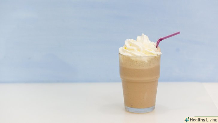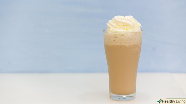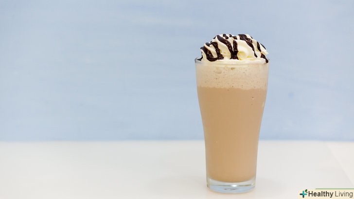 - Додайте молоко.зазвичай для фраппучіно використовується незбиране молоко, але можна додати і менш жирне молоко, жирністю 2%, або навіть знежирене. Можна також використовувати і рослинне молоко (наприклад, соєве).