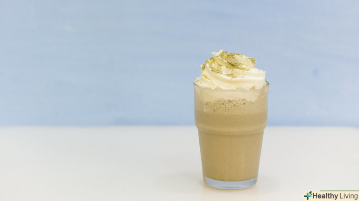 Приготуйте фраппучіно з зеленим чаєм матчу.спробуйте незвичайний фраппучіно з японського зеленого чаю матча (маття). Чай матча має форму порошку, і тому його можна легко додати в напій. Змішайте в блендері всі перераховані нижче інгредієнти, потім перелийте вийшов фраппучіно в високий келих. Прикрасьте зверху збитими вершками, якщо хочете.[9]- 1½ столових ложки (9 г) японського зеленого чаю матчу