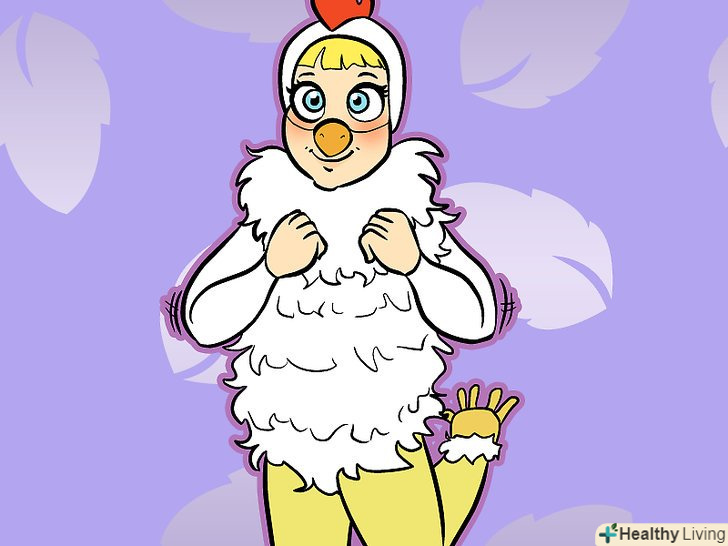 Вбратися курчам-дивно весело для малюків, дітей старшого віку і навіть дорослих. Оберніться в пір'я на день і відрепетируйте курча танець. Зробіть костюм курчати, зібравши разом боді, покрите пір'ям, курчаву капелюх і жовті ніжки.