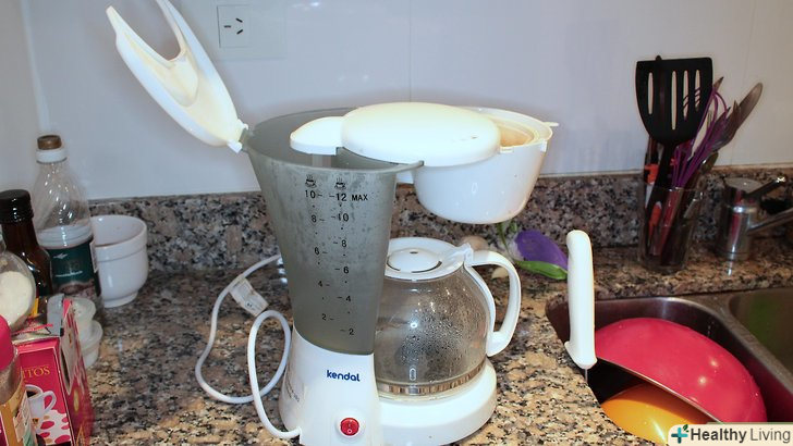 Залишайте кришку резервуара для води відкритою.багато тримають кришку резервуара для води в закритому положенні. Однак її краще залишати відкритою, коли кавоварка не використовується. Це дозволить просохнути нутрощів приладу і запобіжить розвитку цвілі і бактерій у вологому середовищі.[11]- Регулярно споліскуйте заварювальне сито в раковині.Заварювальне сито дуже сильно схильне до утворення цвілі, так як воно намокає в процесі варіння кави. Обов'язково споліскуйте його після кожного використання і введіть собі в звичку мити сито кожен раз, коли миєте посуд. Це дозволить захистити кавоварку від цвілі і шкідливих мікроорганізмів.[12]