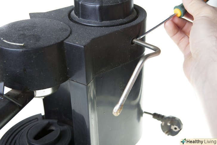 Почистіть варильну головку (це та деталь, через яку проходить вода).у більшості кавоварок вона тримається на одному гвинті і може бути легко відкручена. Нахиліть кавоварку (переконайтеся, що там немає води) і відкрутіть варильну головку. Використовуйте зубну щітку, чистячу тканину, використовуйте все, чим можна почистити куточки і закутки.