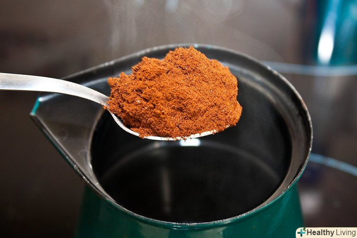 Зніміть кавник з плити і дозвольте піні осісти.як тільки піна осіла, додайте кардамон.