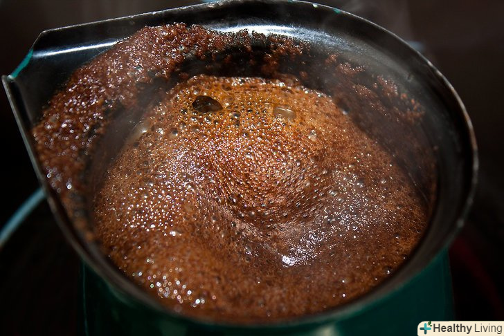Поставте кавник на піч і закип'ятіть його ще раз.в процесі кип'ятіння знову утворюється піна, як це показано в попередніх кроках.