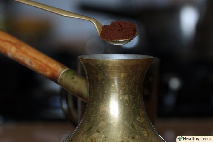 Насипте 1 ч.ложку (5 г) меленої кави в турку. Якщо хочете отримати більш міцний напій, то додайте більше кави. Однак менше 2 чайних ложок (10 г) має бути достатньо.
