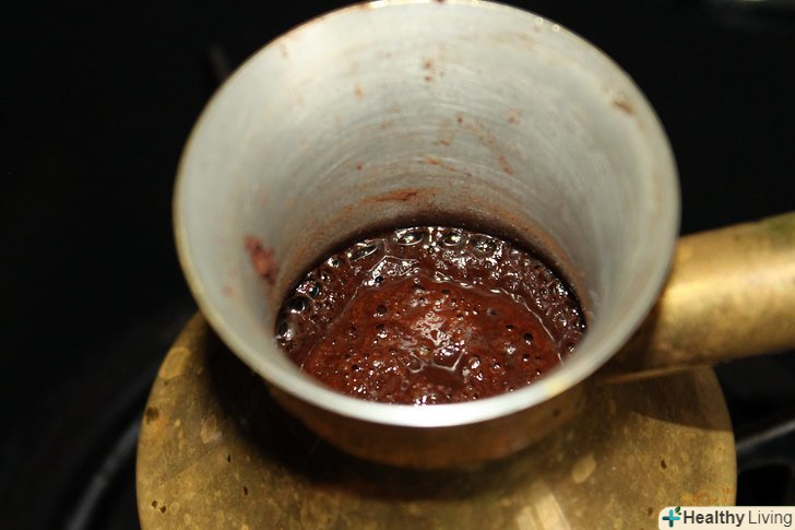 Варіть каву на повільному вогні до того як вода почне закипати.на поверхні кави повинна утворитися пінка у вигляді неповного кола.