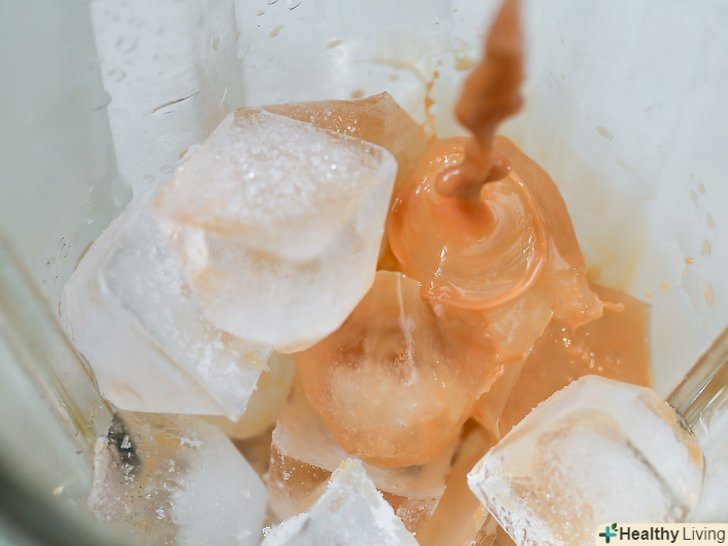 Покладіть в блендер лід.деякі моделі блендерів не можуть подрібнювати великі шматки льоду, тому покладіть в блендер колотий лід замість одного великого шматка. Як варіант, візьміть 1 склянку кубиків льоду.