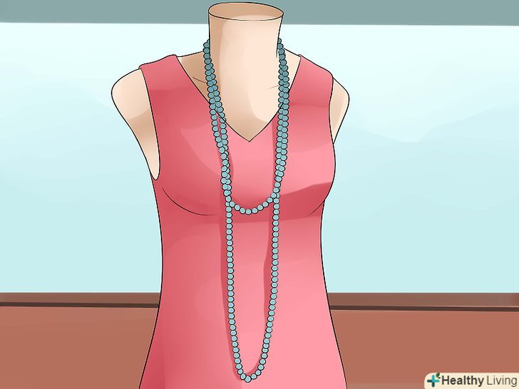 Виберіть аксесуар на шию.Будь то шарф або довге намисто, справжня дівчина-флаппер навряд чи обійшлася б без такої прикраси.- Віддайте перевагу довгим намистам в одну нитку або в кілька ниток різної довжини. З прикрас флапери носили майже виключно довгі намиста з намистин, іноді в два ряди.