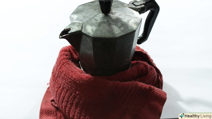Оберніть кавоварку холодним рушником або опустіть її в холодну водопровідну воду.це необов'язково, але бажано зробити для того, щоб кава не придбав металевий присмак.- Розлийте готову каву по чашках або налийте в графин.якщо цей вид напів-Еспресо занадто міцний для вас, ви можете розбавити його водою.