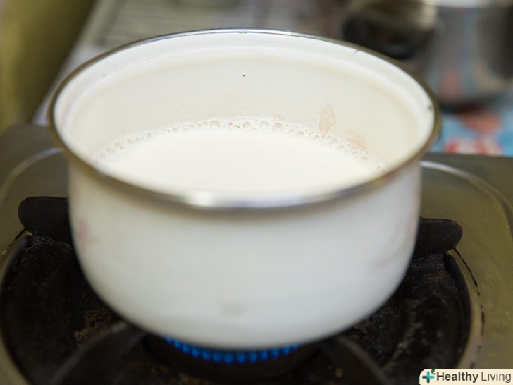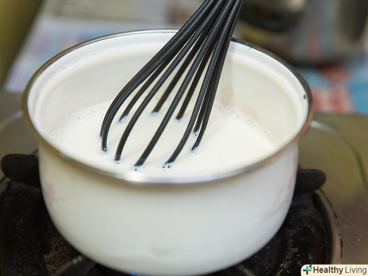 Підігрійте молоко на середньому вогні, щоб воно стало гарячим, але не доходило до кипіння.- Для нашої кави температура молока повинна бути не вище 70 градусів Цельсія. На цьому етапі воно може бути трохи гаряче, так як молоко трохи охолоне, коли ви його будете збивати.