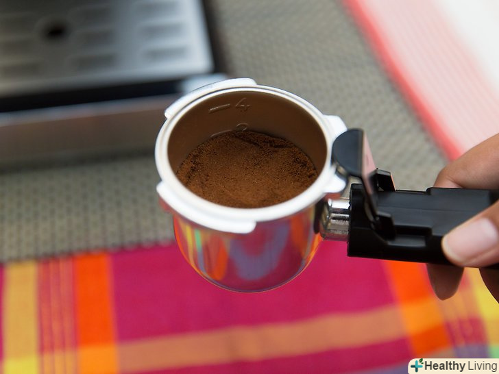 Помістіть мелену каву в портафільтр.вийміть портафільтр з головки групи спереду кавомашини. Всипте в нього 7 грам меленої кави і утрамбуйте його.- Всі кавоварки трохи відрізняються, але, як правило, вам знадобиться витягти портафільтр, повернувши ручку вліво і потягнувши її вниз.