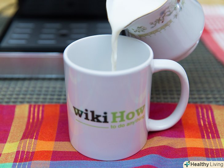 Налийте молоко.влийте молоко в металевий глечик, який ви використовуєте з кавоваркою еспресо.- Зверніть увагу, що обсяг молока збільшиться вдвічі, після того як ви його обробите парою, тому на цьому етапі молока повинно бути не більше половини глечика.