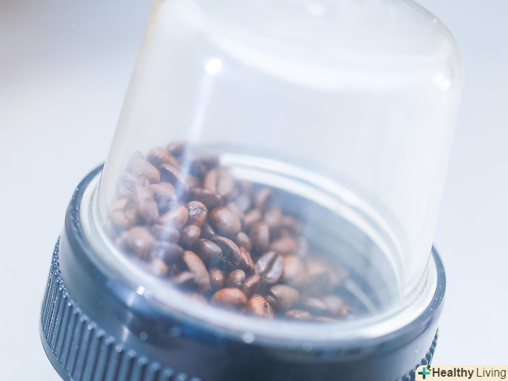 Подрібнюйте свіжі зерна до стану дрібних крупинок.щоб смак залишався міцним, робіть це безпосередньо перед заварюванням напою. Чим дрібніше помел, тим швидше напій придбає кавовий смак, оскільки вода в цьому випадку стикається з великою кількістю кави. Якщо напій, на ваш погляд, занадто легкий, наступного разу подрібнюйте його ретельніше.- Кава стане дуже гірким, якщо ви занадто подрібніть зерна. Як правило, кава середнього помелу (який має консистенцію пляжного піску) найкраще використовувати для крапельного заварювання, а кава грубого помелу (який має консистенцію кухонної солі) більше підходить для заварювання у френч-пресі або іншим довгим способом.[8]